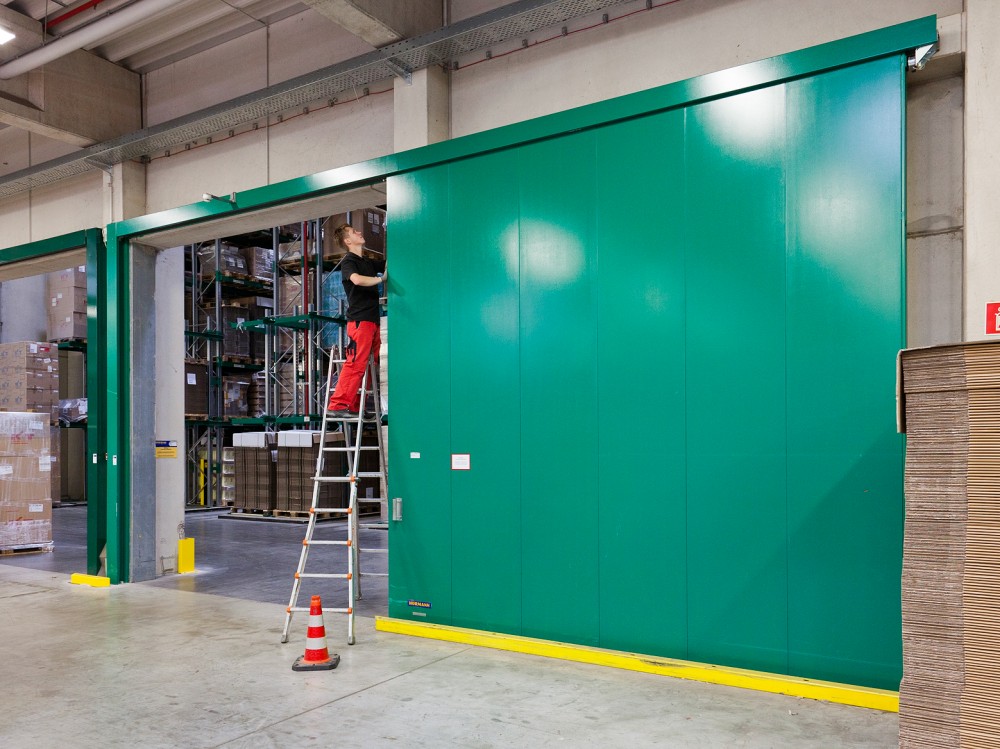 Die Türen und Tore werden von einem Magneten an der Wand festgehalten und sind somit geöffnet. Im Brandfall lösen sich die Türen automatisch von dem Magneten ab und fallen zu. Dadurch wird die Ausbreitung von Feuer und Rauch dezimiert.