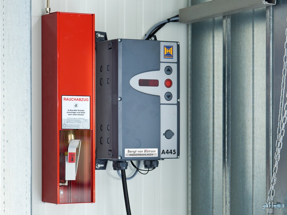 Auch in der Halle wird kein wertvoller Raum verschenkt, denn das Torblatt wird unter der Decke, parallel zum Dach oder senkrecht an der Wand abgestellt. Durch den Anschlag hinter der Öffnung wird die Durchfahrt voll genutzt. Das schließt Beschädigungen nahezu aus.